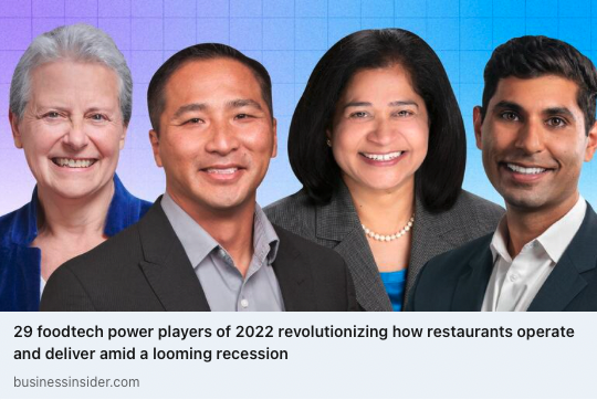 Business Insider's 2022 list spotlights foodtech leaders who are helping restaurants take their digital business to the next level as they face a looming recession. They are working behind the scenes to help some of the industry's most iconic companies, brands, and hospitality legends — such as José Andrés, Danny Meyer, Chipotle, Popeyes, DoorDash, Wendy's, and Arby's.